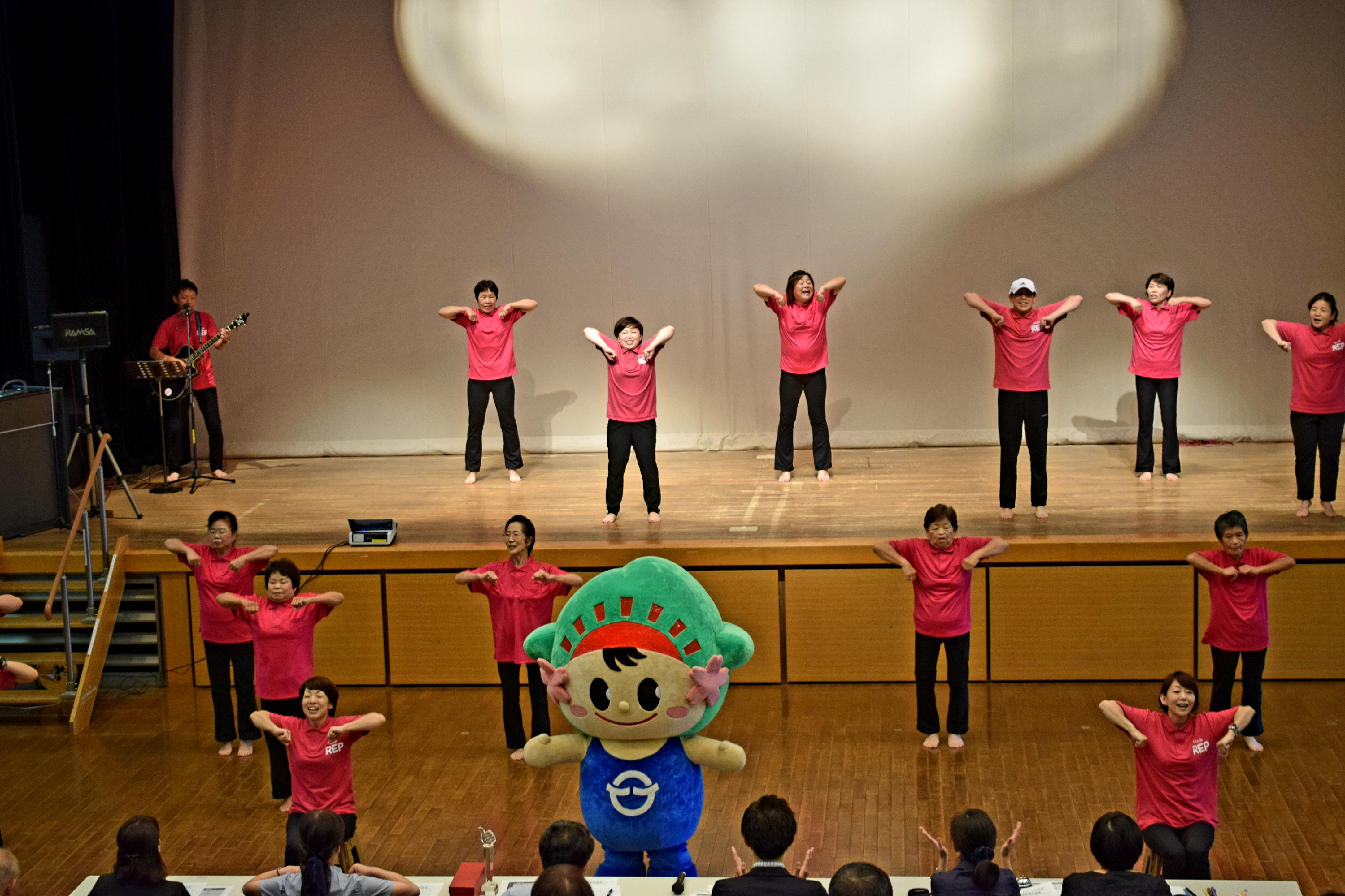 9/22(土)埼玉県彩の国いきいきセンターすぎとピアで行われた【第三回 全国ご当地健康体操甲子園 舞えんのか?2018】に、ひのでちゃんと地域のリンパ体操の方々(ビットアップさん)と参加し、なんと・・・優勝♪一応全国大会だから日本一!!